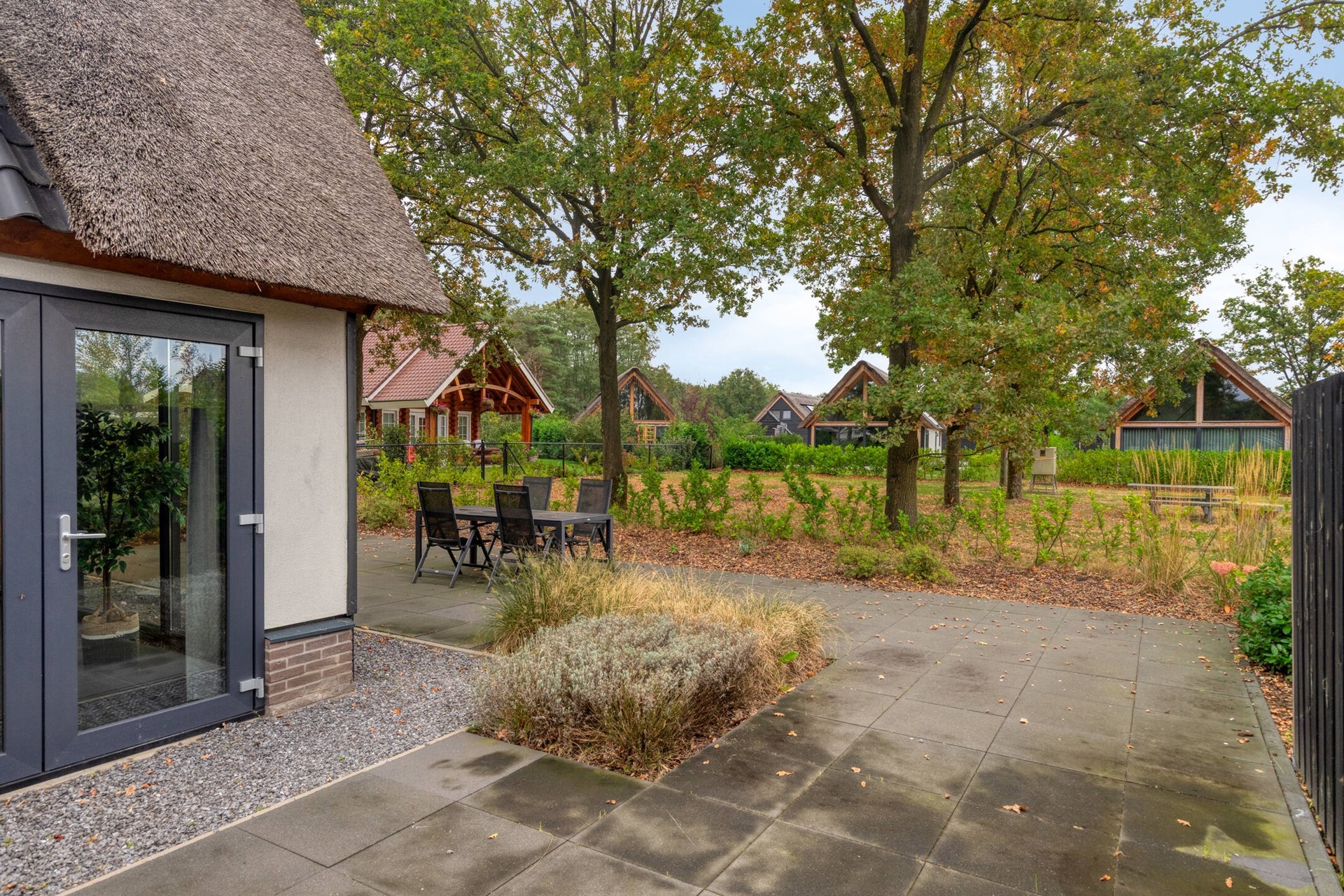 De openslaande deuren geven toegang tot het zonnige terras en de onderhoudsarme tuin, waar u optimaal kunt genieten van de rust en privacy. Vanuit de achtertuin is er vrij uitzicht over de velden. Parkeren kan direct bij de woning.